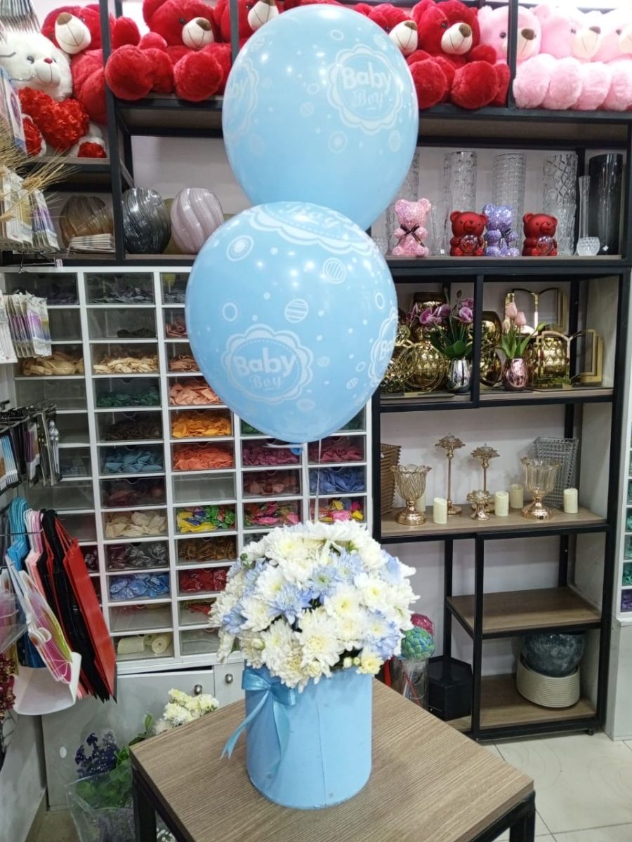 ‏بوكس بيبي حجم وسط مع بالون هيليوم