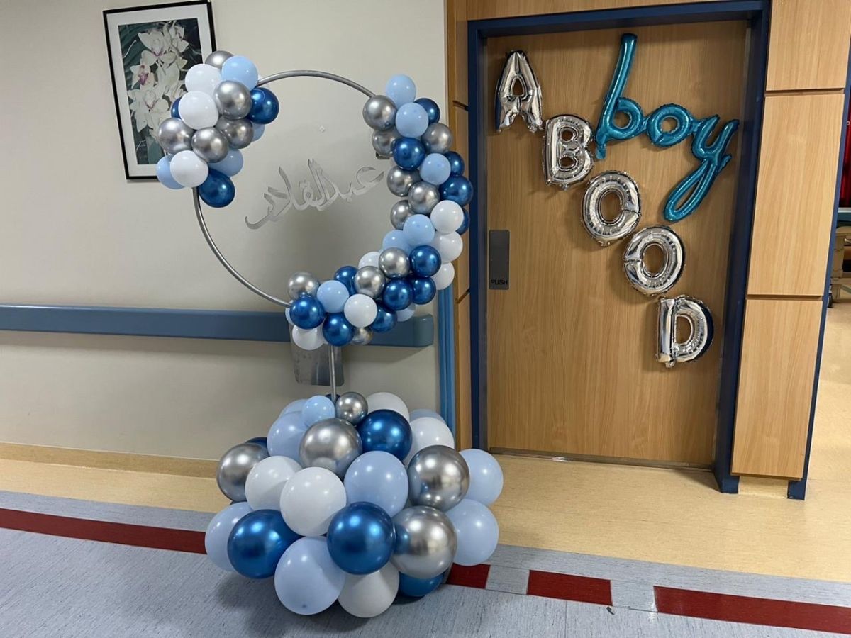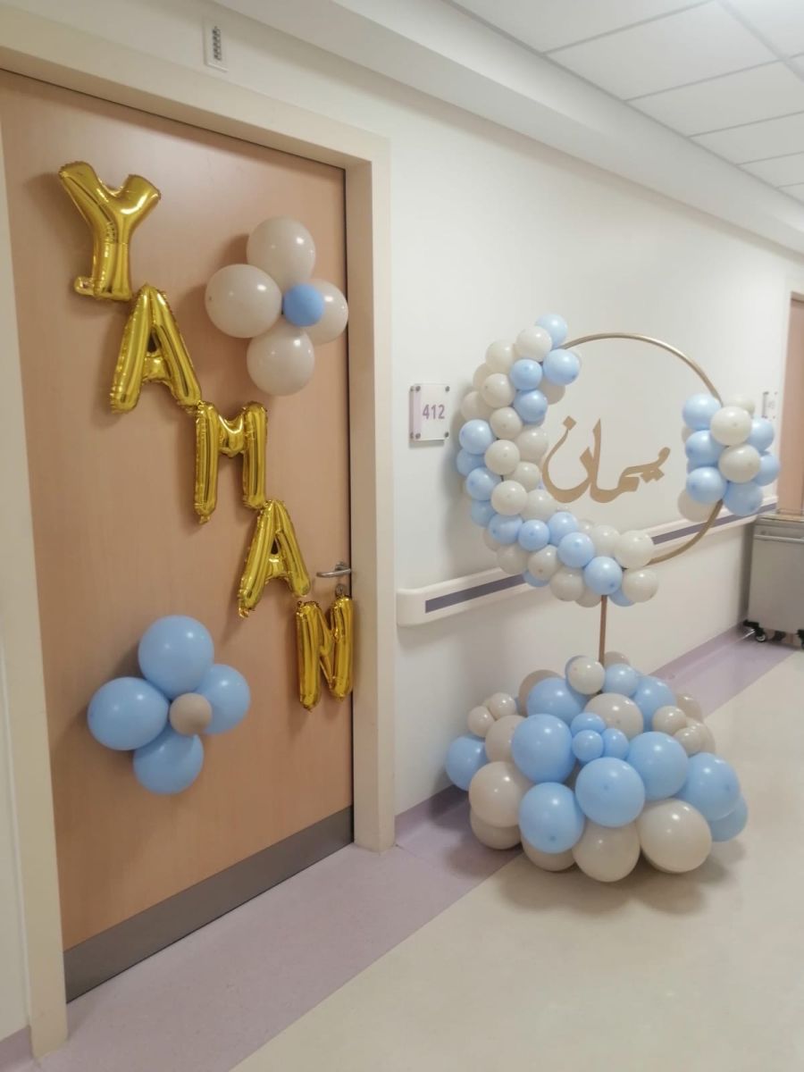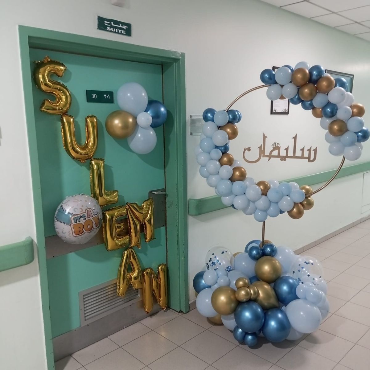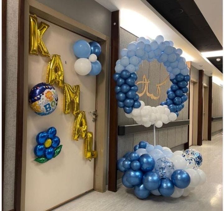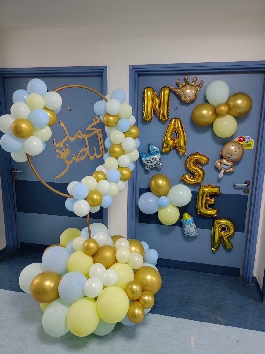 ستاند بالونات دائري مع اسم خشب وزينة باب