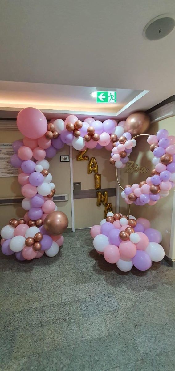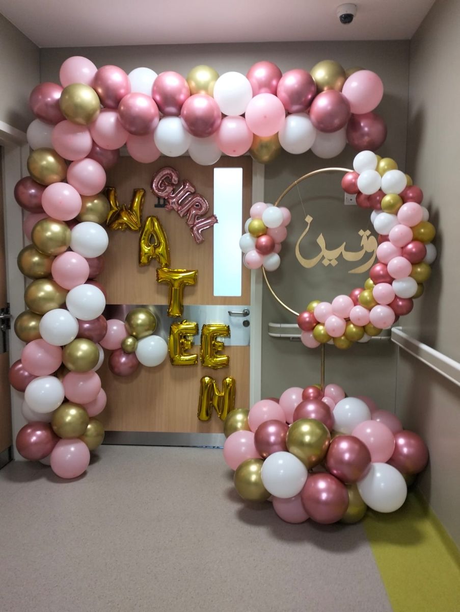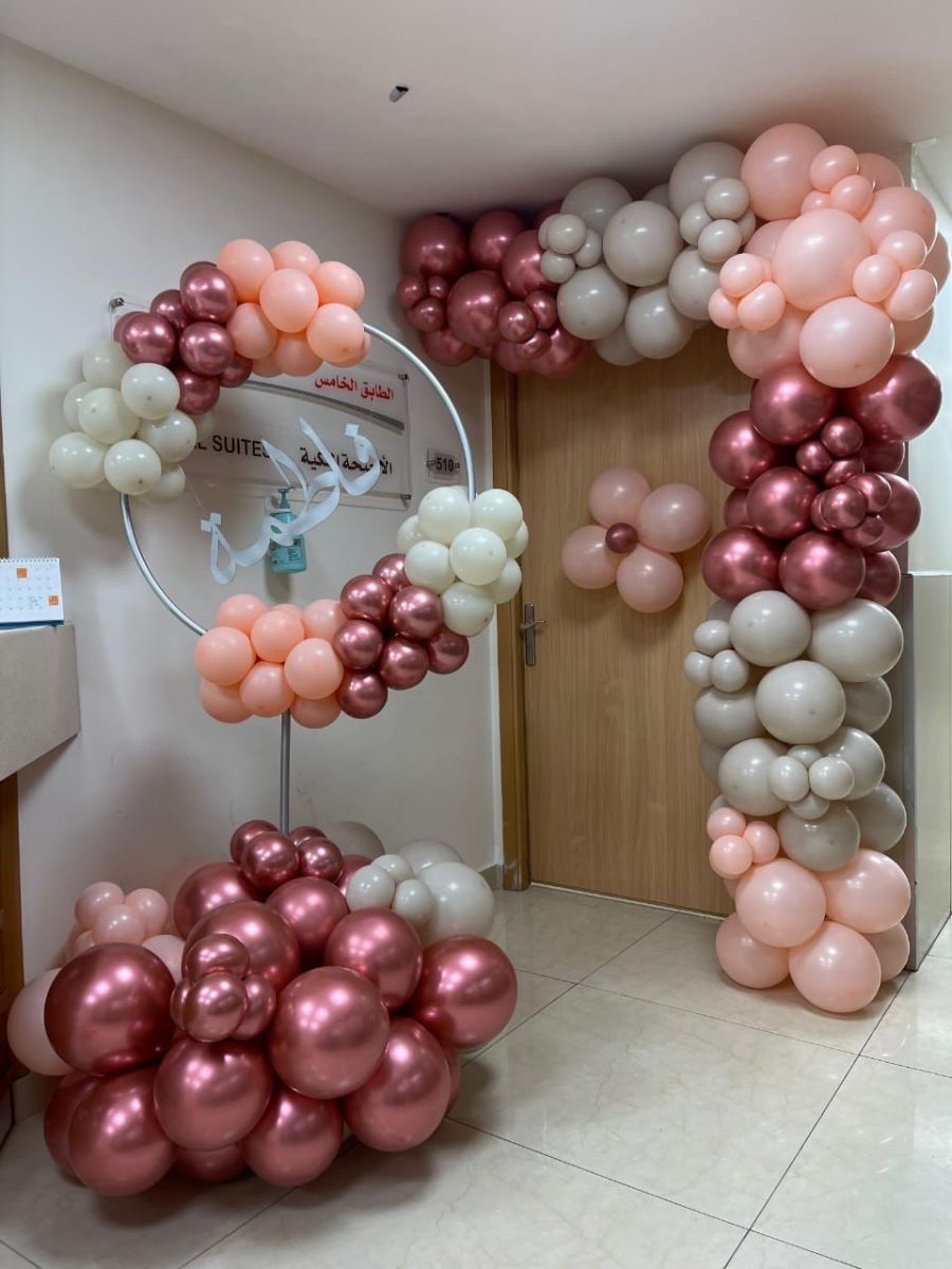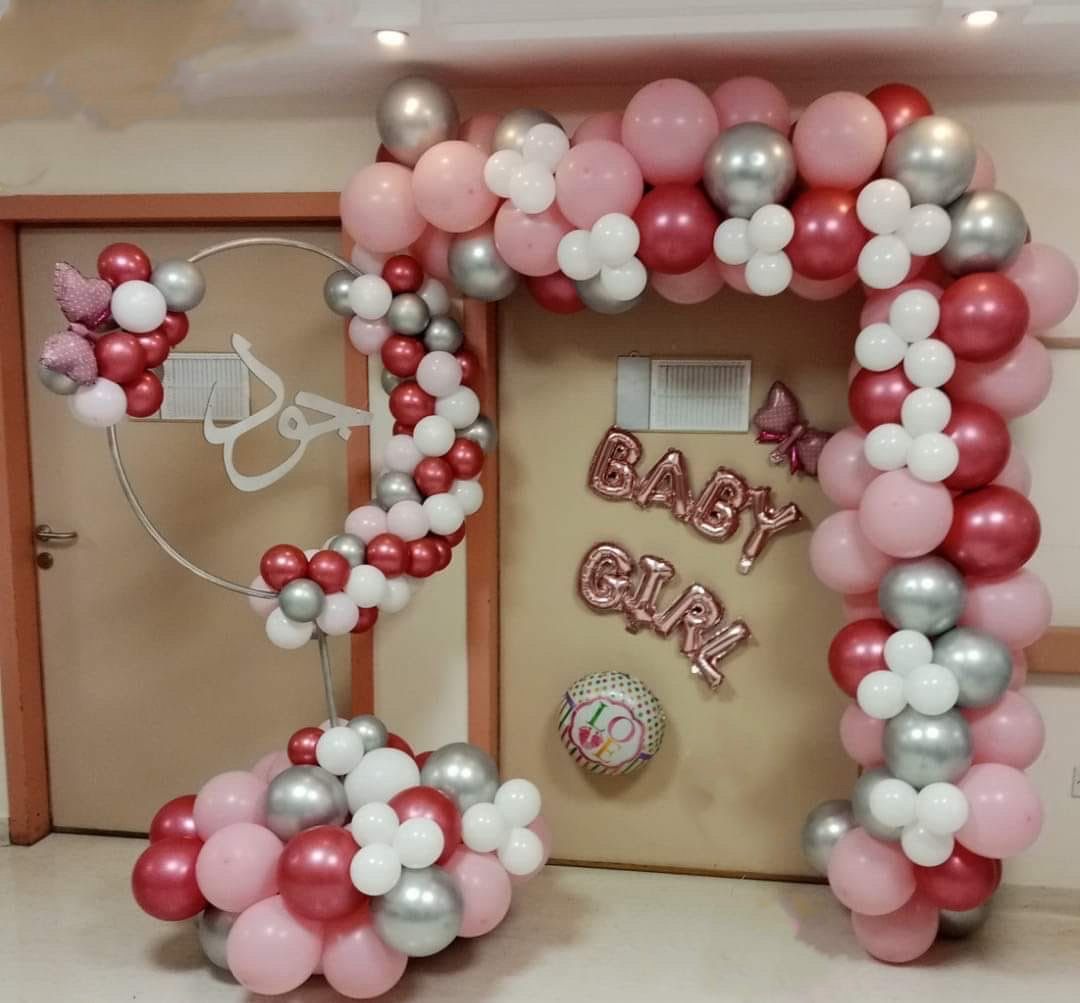 نص قوس مع ستاند بالونات دائري واسم خشب