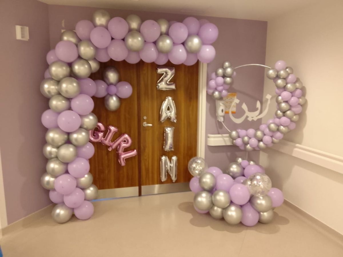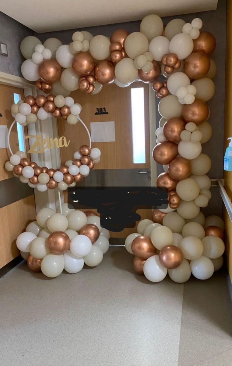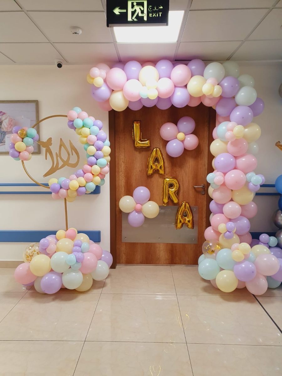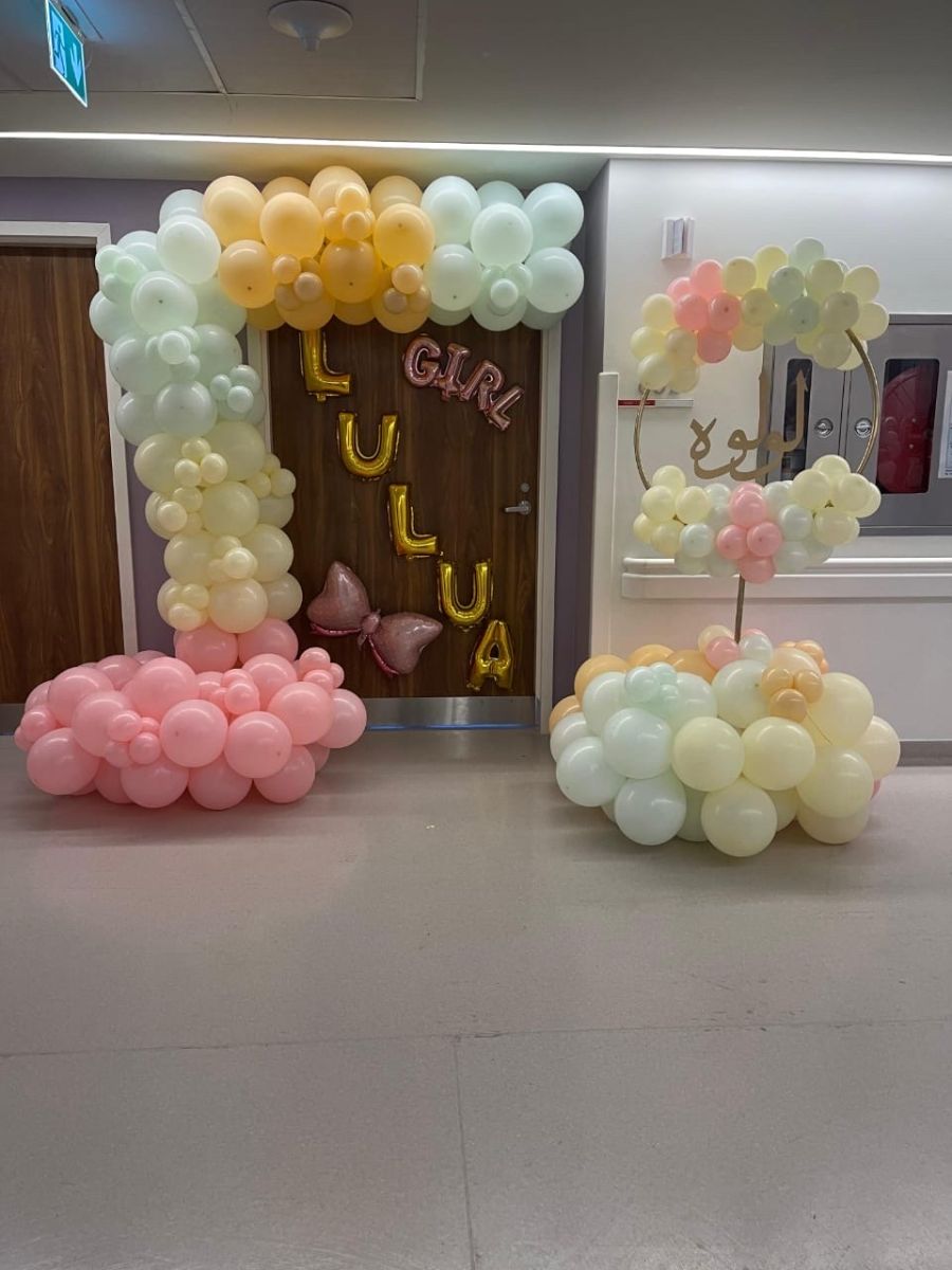 نص قوس مع ستاند بالونات دائري واسم خشب