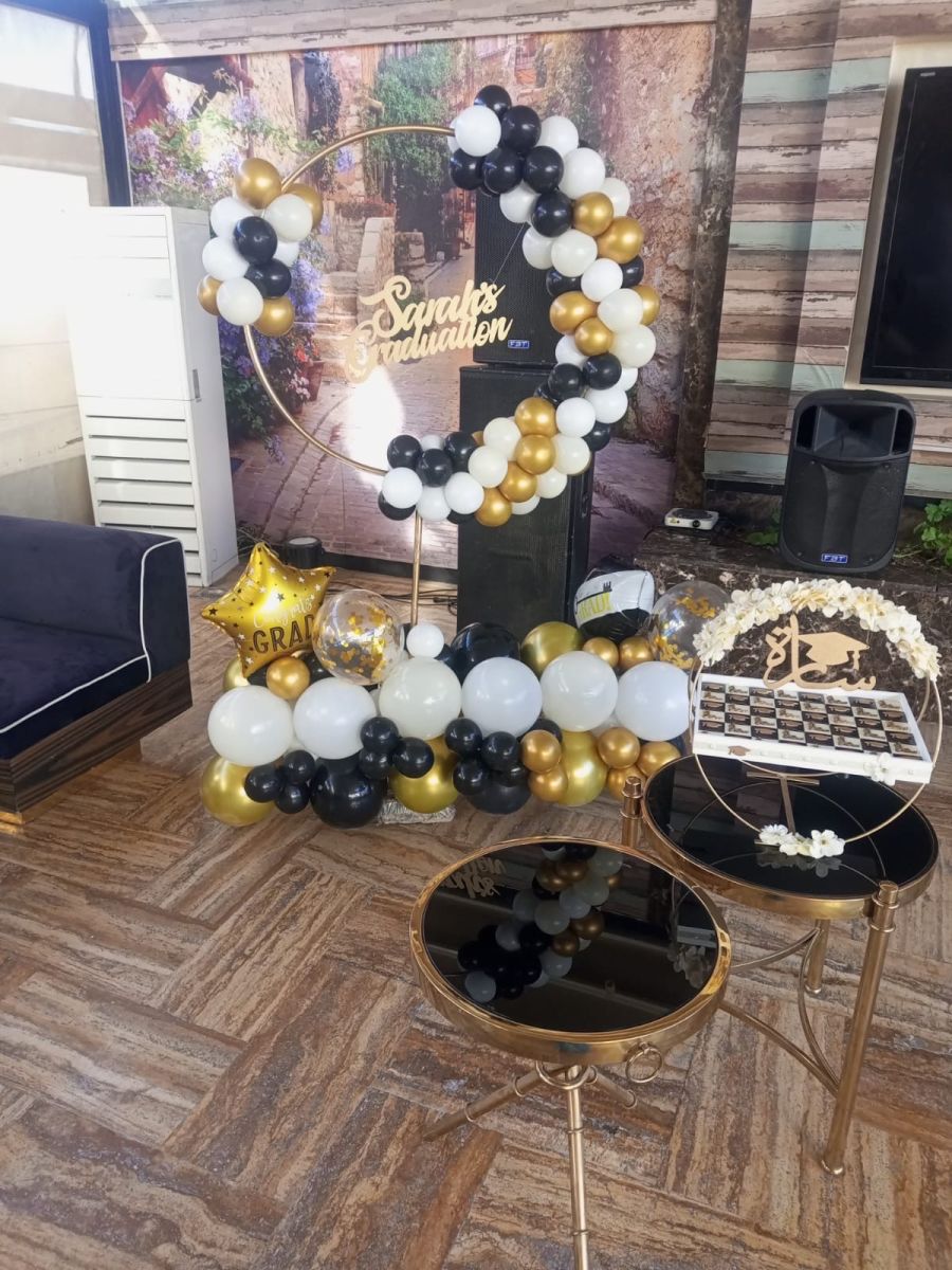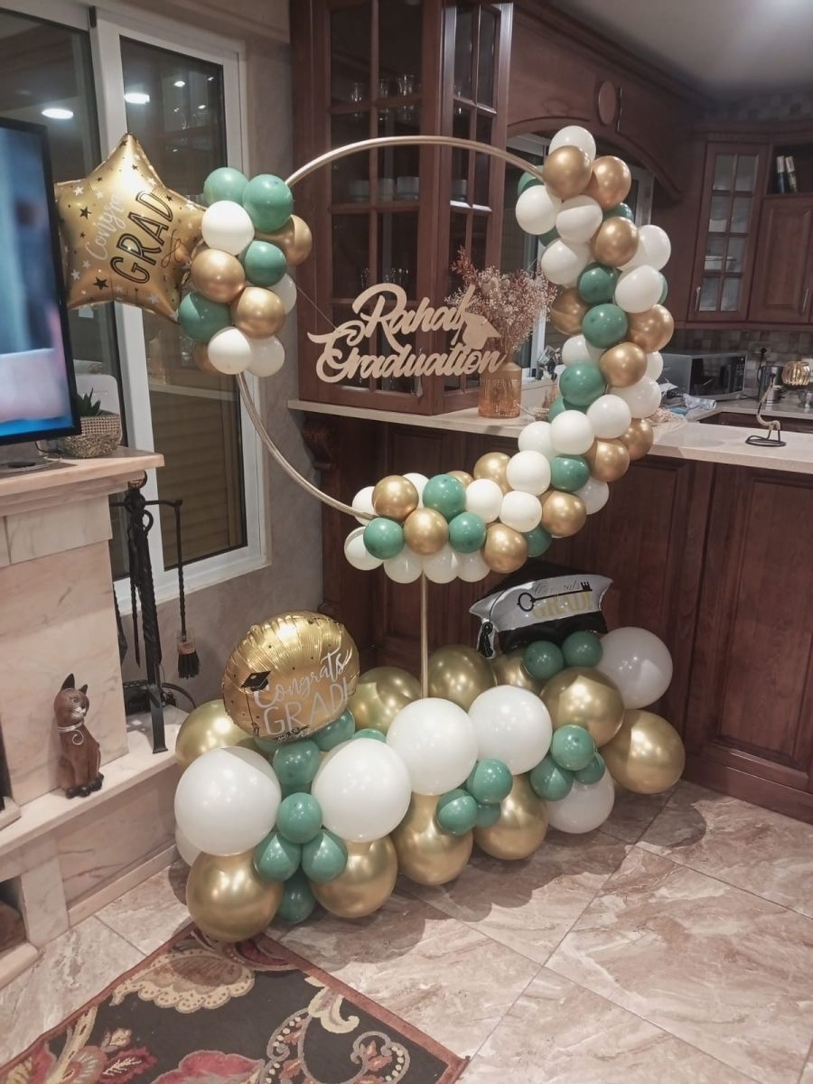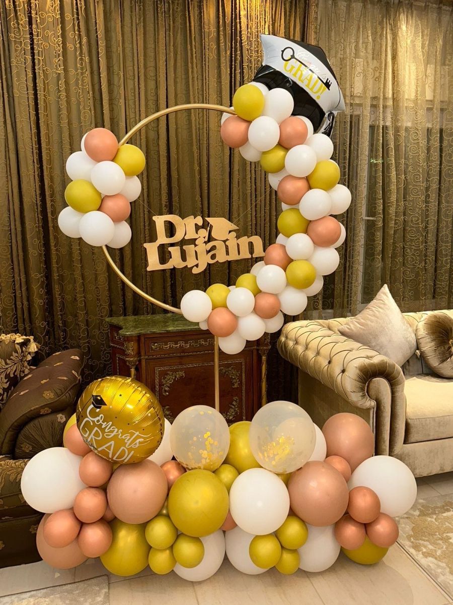 ‏دائرة بالونات مع اسم خشب